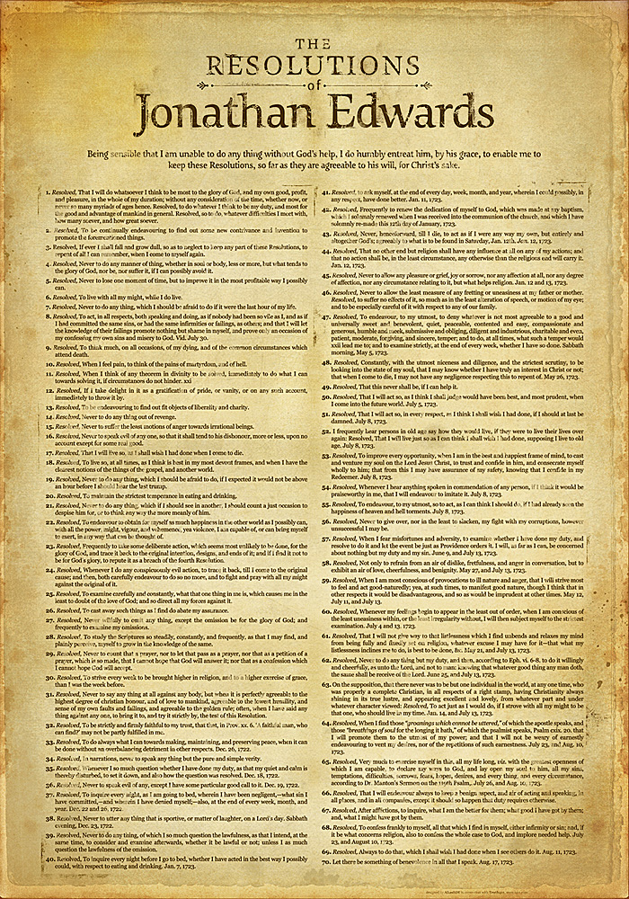 Jonathon Edwards, widely acknowledged to be America’s most important and original philosophical theologian, and one of America’s greatest intellectuals, in his 70 resolutions, wrote: