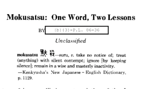 Mokusatsu, a word that we could very well translate as “no comment” nowadays, or “let me withhold comments for now” was translated as “let’s ignore it”.