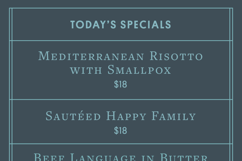 At a restaurant in Mexico: “Special today – no ice cream”. That’s not very special, Mexico.