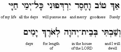 “Surely goodness and mercy shall follow me all the days of my life...”.