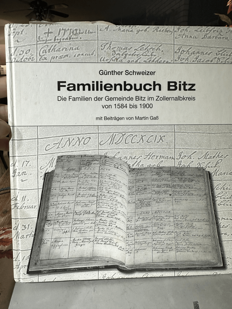 Today, while working from home, I decided to look for the book ONE MORE TIME before heading to the Goodwill to search the shelves. I mean, how many people would actually be interested in buying “Familienbuch Bitz : die Familien der Gemeinde Bitz im Zollernalbkreis von 1584 bis 1900” from Goodwill??